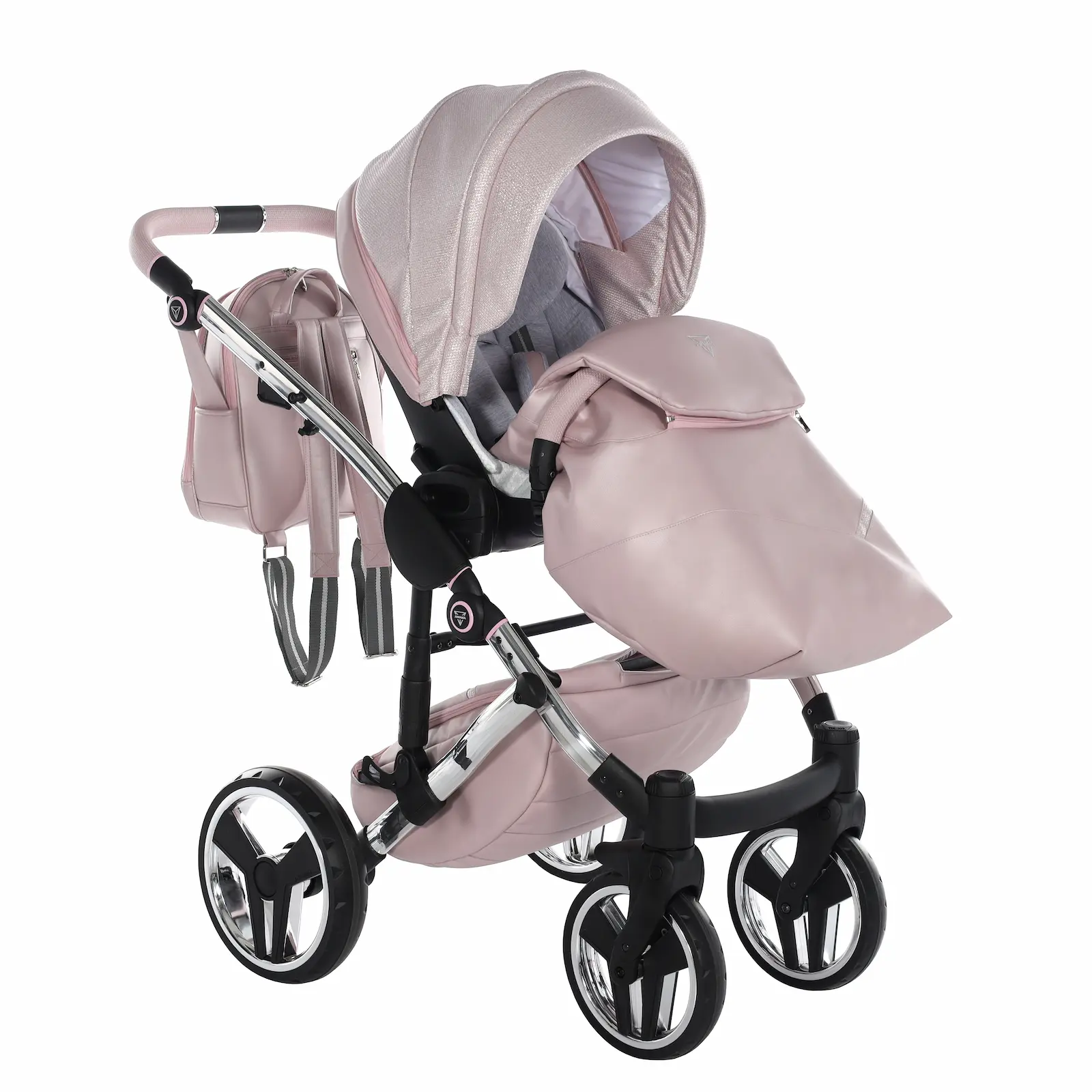 Junama Dolce Mirror Diamond 2in1 è la scelta ideale per i genitori moderni che cercano un passeggino elegante, sicuro e dal design esclusivo. Questo sistema 2 in 1 accompagna il tuo bambino dalla nascita fino ai 3 anni, garantendo comfort, protezione e uno stile senza tempo.