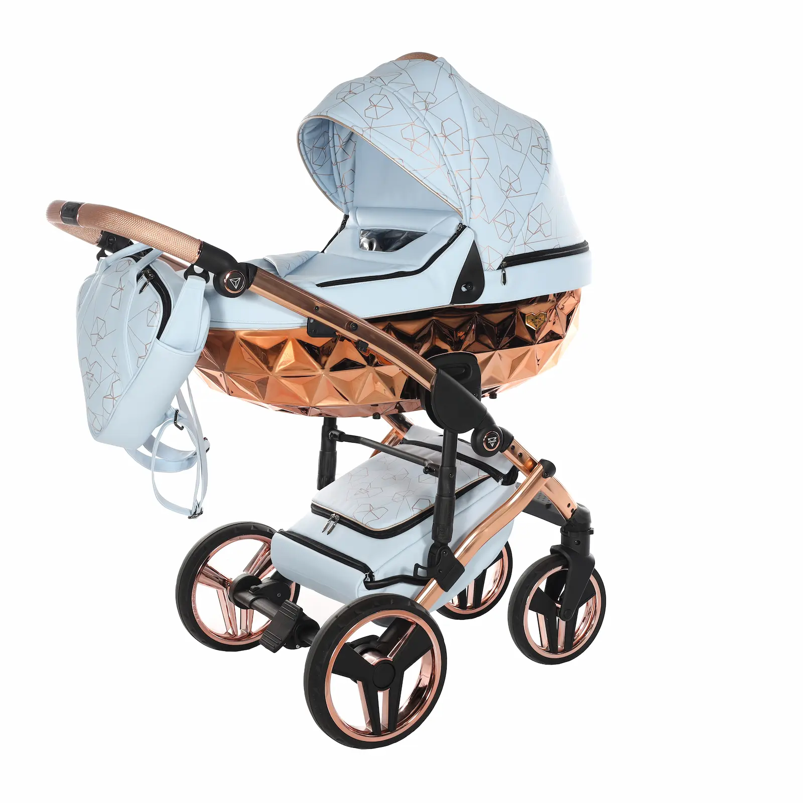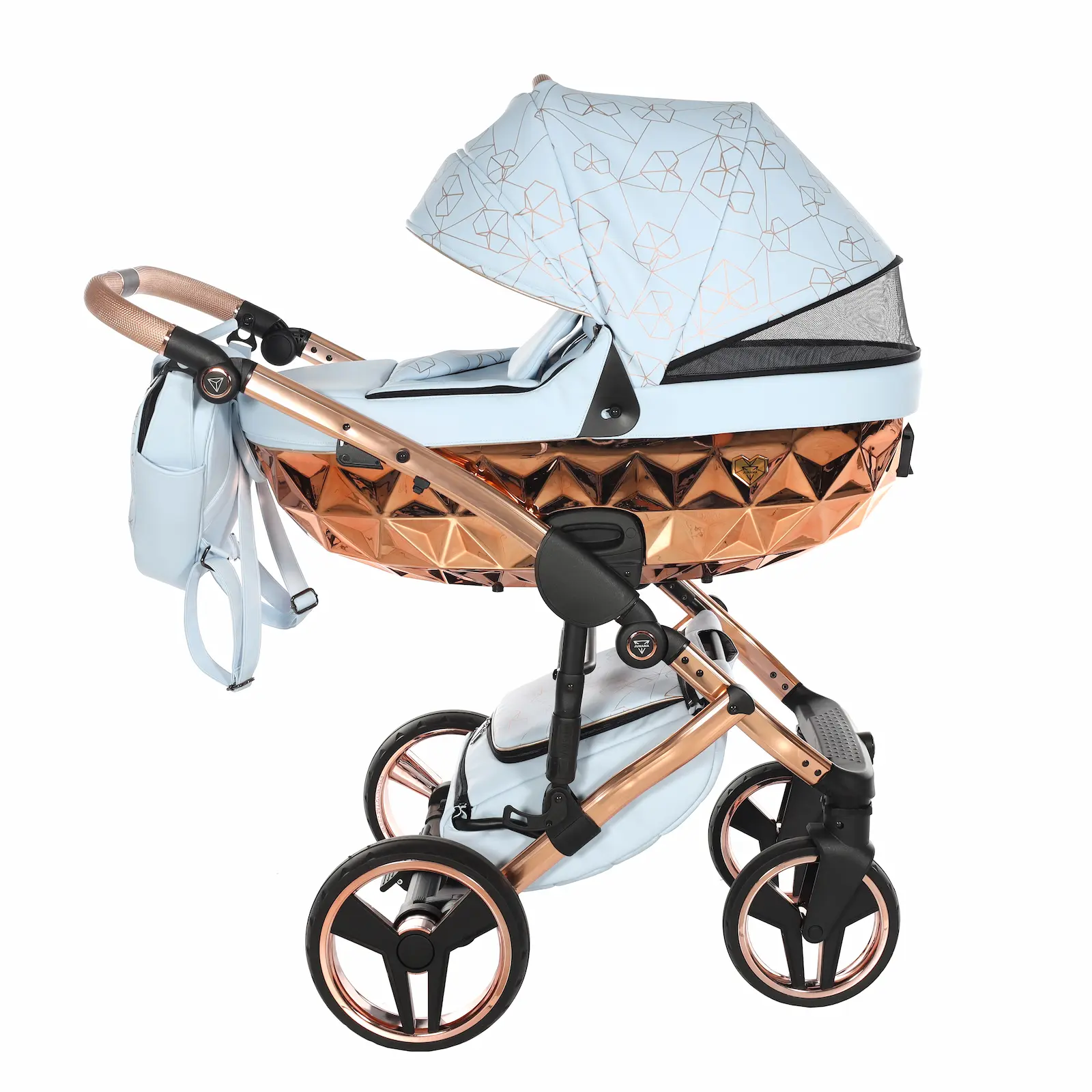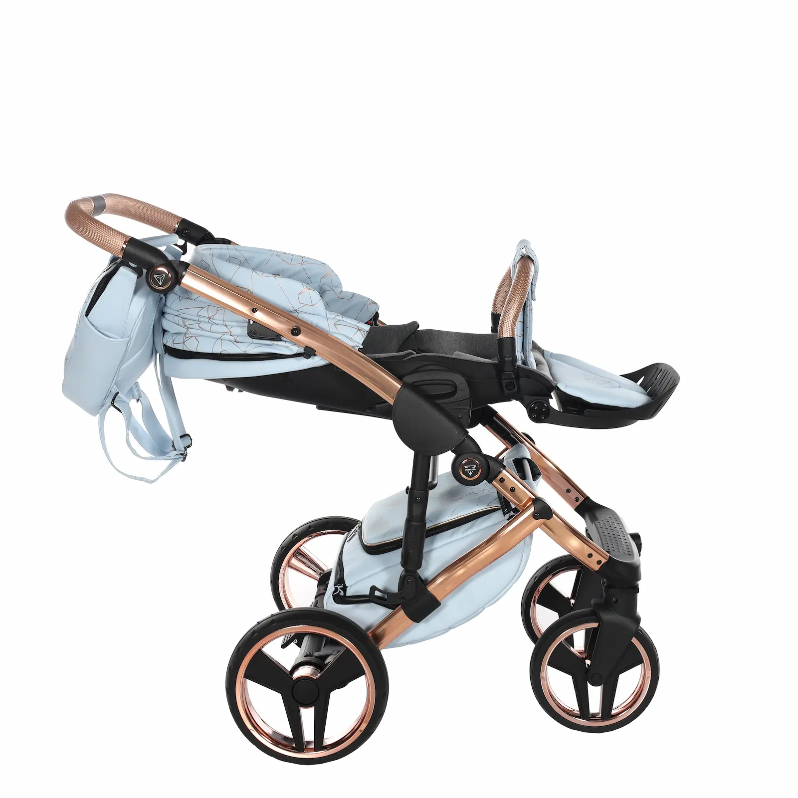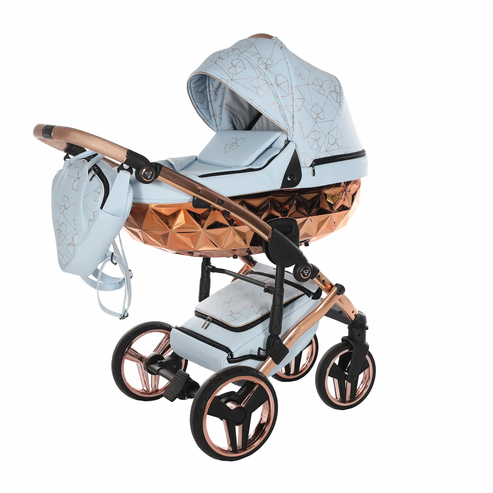 A differenza della collezione S-Line, il Junama Heart Diamond è realizzato interamente in ecopelle di alta qualità, elegante, resistente e facile da pulire. Il vero elemento distintivo sono i motivi in rilievo a forma di cuore, che insieme ai colori raffinati rendono questo passeggino esclusivo e immediatamente riconoscibile.