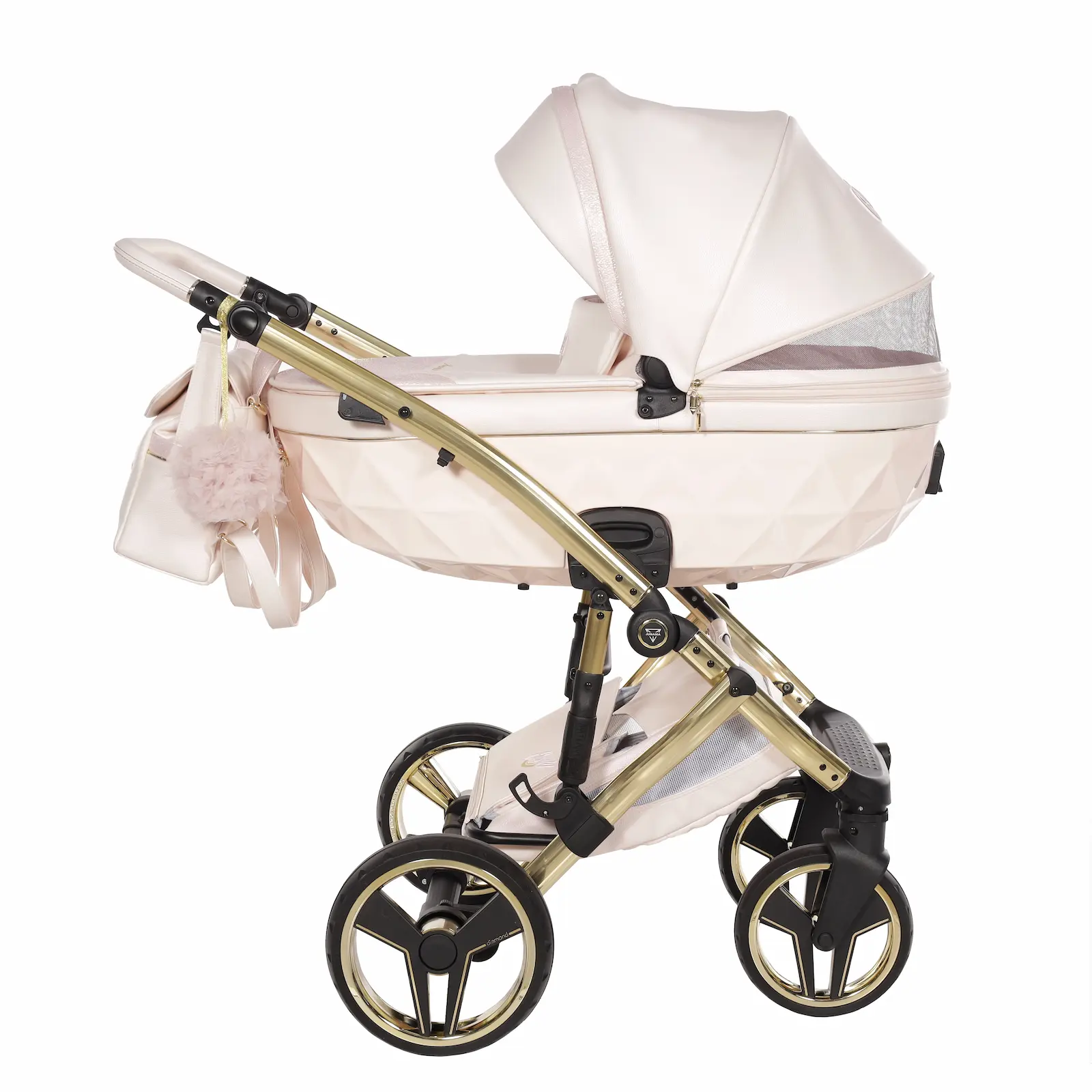 Le raffinate finiture Premium Diamond e le tonalità pastello trasformano ogni passeggiata in un’esperienza elegante, rendendo il passeggino un vero elemento di stile.
