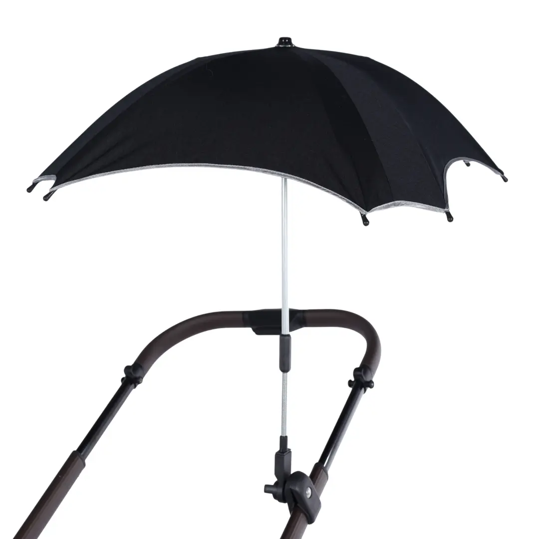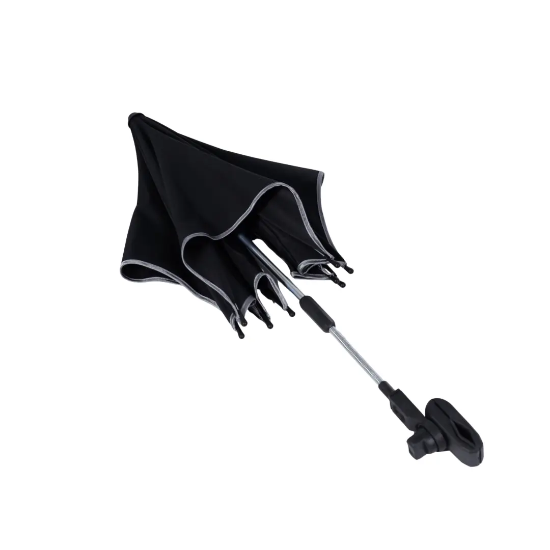 Grazie all’aggancio universale, l’ombrellino si monta facilmente sul telaio. Il morsetto regolabile garantisce un fissaggio stabile e sicuro e permette uno smontaggio rapido quando non serve.